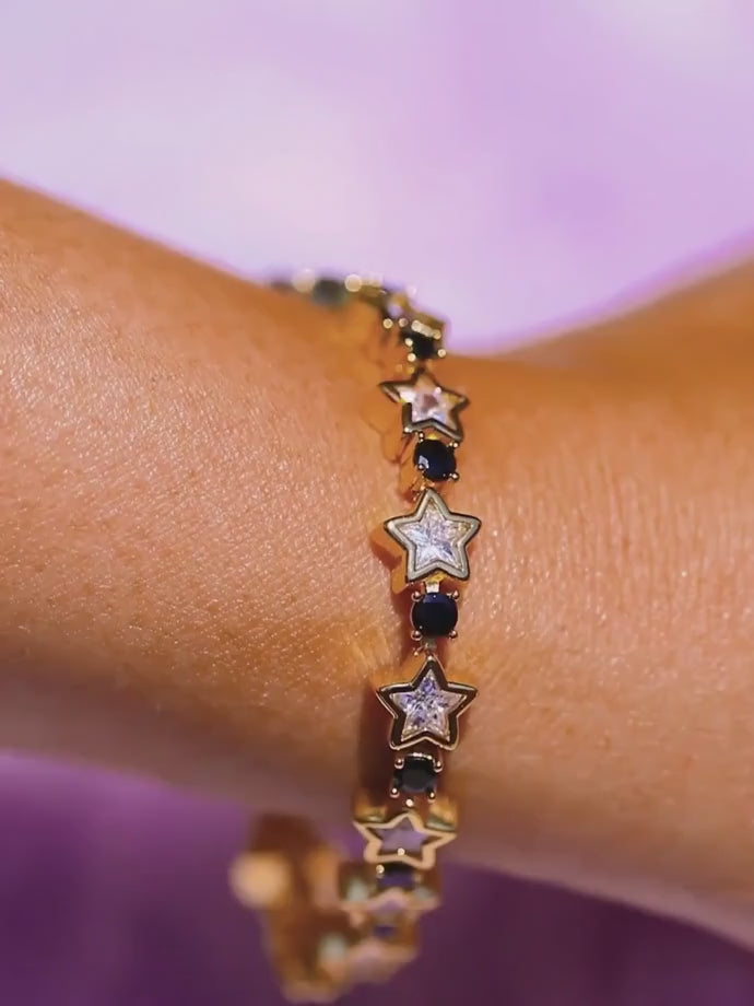 • Design: Bezel star tennis bracelet with black crystals and white crystals