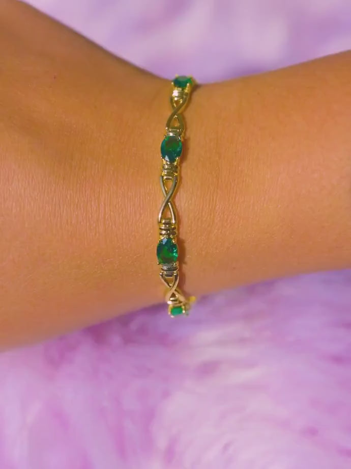 • Design: Oval emerald tennis bracelet with gold links