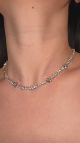 • Design: Tennis necklace with aquamarine star bezel crystal charms