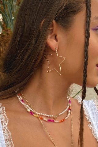 - Design: Gold hoops with mismatched star and moon dangle charms