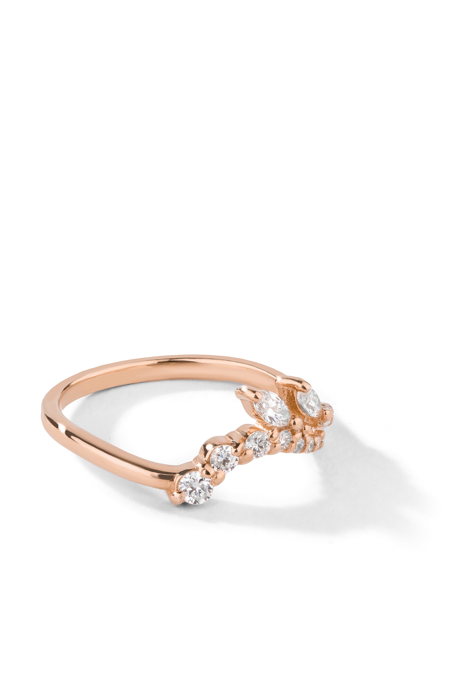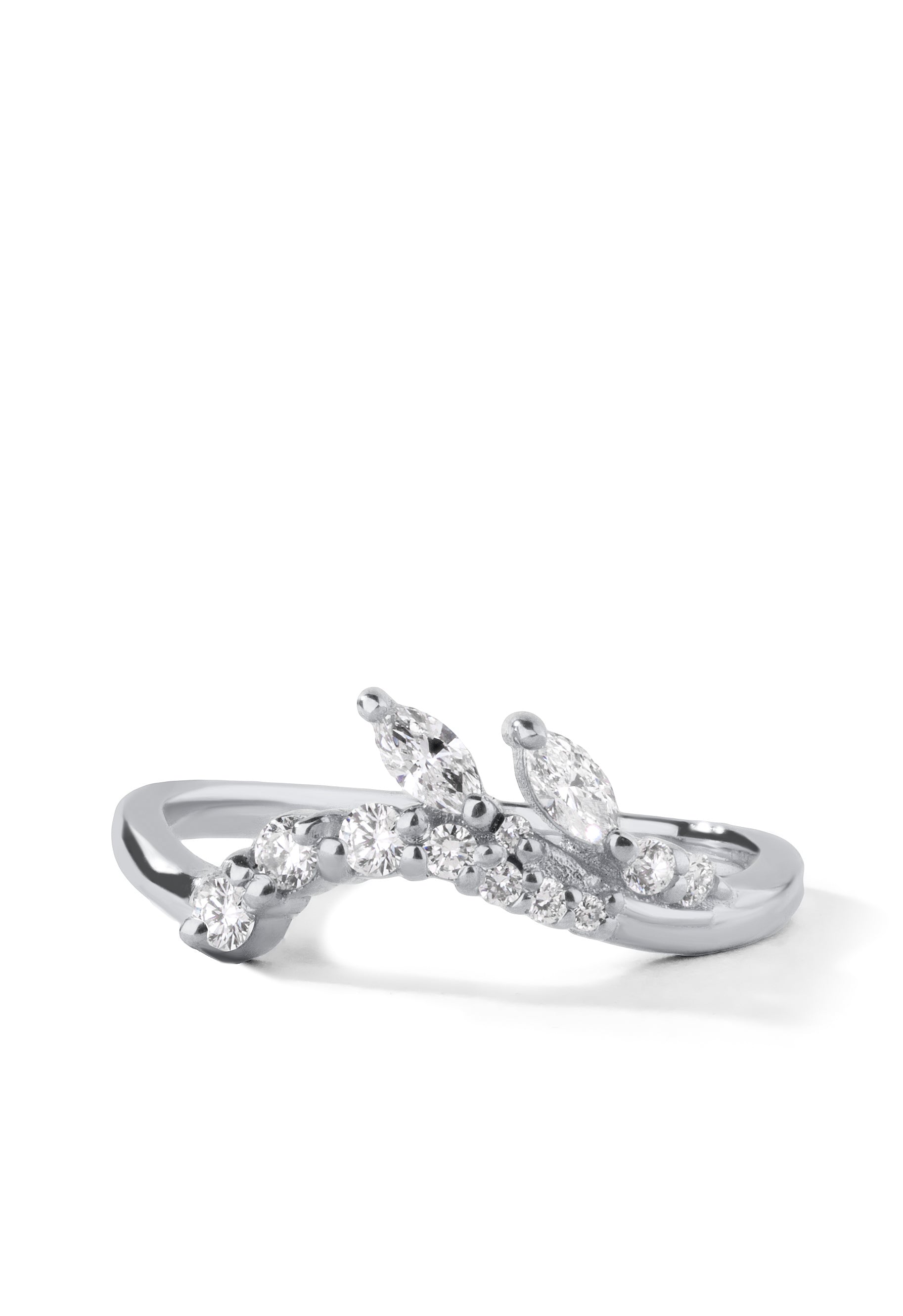 - Design: .40ct round diamonds + .20ct marquise diamonds on a wave band