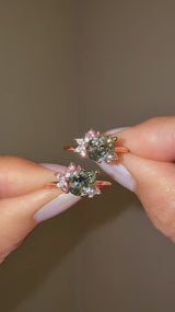 - Design: Olive grey pear cut crystal with pink and white accompanying crystals